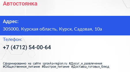 Автостоянка по адресу 305000, Курская область, Курск, Садовая, 10а в дальнейшем Организация, размещена в следующих категориях: