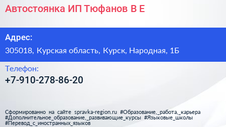 Автостоянка, ИП Тюфанов В.Е. по адресу 305018, Курская область, Курск, Народная, 1Б в дальнейшем Организация, размещена в следующих категориях: