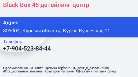 Black Box 46, детейлинг-центр по адресу 305004, Курская область, Курск, Кузнечная, 11 в дальнейшем Организация, размещена в следующих категориях: