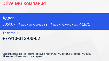 Drive-MG, компания по адресу 305007, Курская область, Курск, Сумская, 41Б/1 в дальнейшем Организация, размещена в следующих категориях: