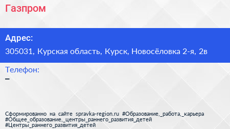Газпром по адресу 305031, Курская область, Курск, Новосёловка 2-я, 2в в дальнейшем Организация, размещена в следующих категориях: