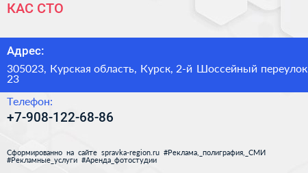 КАС, СТО по адресу 305023, Курская область, Курск, 2-й Шоссейный переулок, 23 в дальнейшем Организация, размещена в следующих категориях: