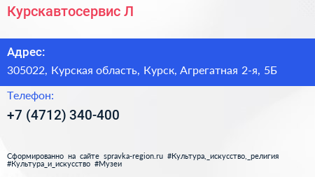 Курскавтосервис-Л по адресу 305022, Курская область, Курск, Агрегатная 2-я, 5Б в дальнейшем Организация, размещена в следующих категориях: