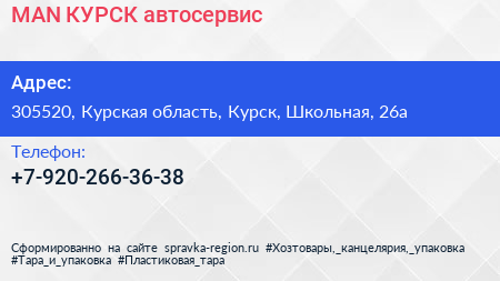 MAN КУРСК, автосервис по адресу 305520, Курская область, Курск, Школьная, 26а в дальнейшем Организация, размещена в следующих категориях: