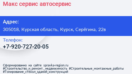 Макс сервис, автосервис по адресу 305018, Курская область, Курск, Серёгина, 22в в дальнейшем Организация, размещена в следующих категориях: