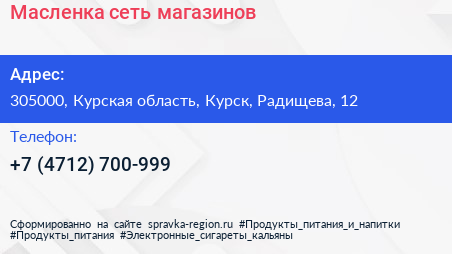 Масленка, сеть магазинов по адресу 305000, Курская область, Курск, Радищева, 12 в дальнейшем Организация, размещена в следующих категориях: