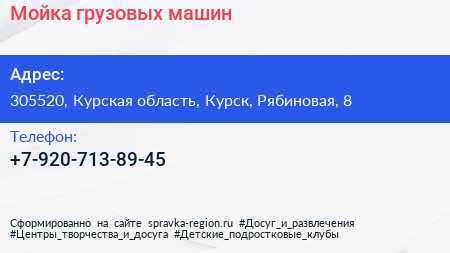 Мойка грузовых машин по адресу 305520, Курская область, Курск, Рябиновая, 8 в дальнейшем Организация, размещена в следующих категориях: