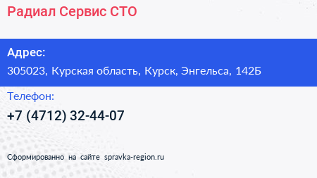 Радиал-Сервис, СТО по адресу 305023, Курская область, Курск, Энгельса, 142Б в дальнейшем Организация, размещена в следующих категориях: