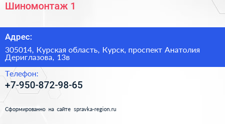 Шиномонтаж №1 по адресу 305014, Курская область, Курск, проспект Анатолия Дериглазова, 13в в дальнейшем Организация, размещена в следующих категориях: