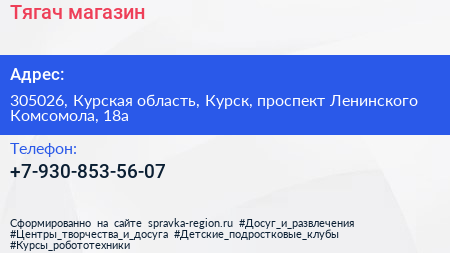 Тягач, магазин по адресу 305026, Курская область, Курск, проспект Ленинского Комсомола, 18а в дальнейшем Организация, размещена в следующих категориях: