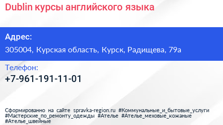 Dublin, курсы английского языка по адресу 305004, Курская область, Курск, Радищева, 79а в дальнейшем Организация, размещена в следующих категориях: