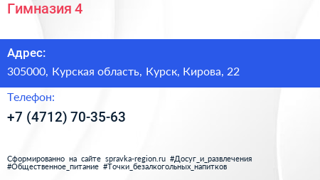 Гимназия №4 по адресу 305000, Курская область, Курск, Кирова, 22 в дальнейшем Организация, размещена в следующих категориях: