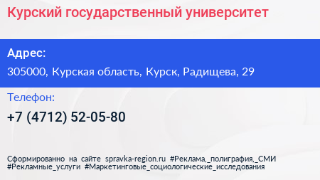 Курский государственный университет по адресу 305000, Курская область, Курск, Радищева, 29 в дальнейшем Организация, размещена в следующих категориях: