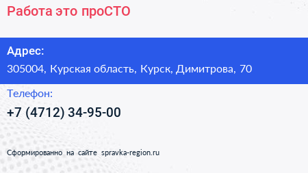 Работа-это проСТО по адресу 305004, Курская область, Курск, Димитрова, 70 в дальнейшем Организация, размещена в следующих категориях: