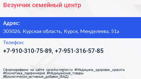 Везунчик, семейный центр по адресу 305026, Курская область, Курск, Менделеева, 51а в дальнейшем Организация, размещена в следующих категориях: