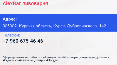 AlexBar, пивоварня по адресу 305009, Курская область, Курск, Дубровинского, 142 в дальнейшем Организация, размещена в следующих категориях: