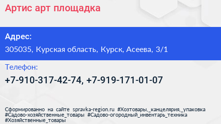 Артис, арт-площадка по адресу 305035, Курская область, Курск, Асеева, 3/1 в дальнейшем Организация, размещена в следующих категориях: