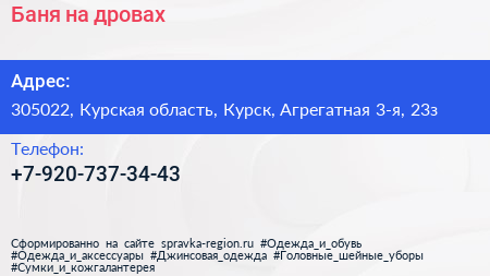 Баня на дровах по адресу 305022, Курская область, Курск, Агрегатная 3-я, 23з в дальнейшем Организация, размещена в следующих категориях: