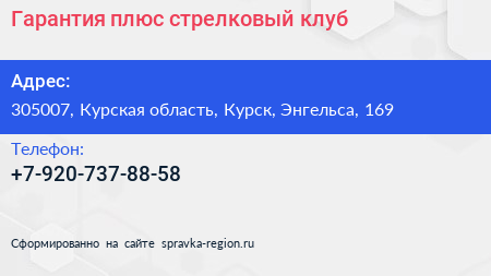 Гарантия плюс, стрелковый клуб по адресу 305007, Курская область, Курск, Энгельса, 169 в дальнейшем Организация, размещена в следующих категориях: