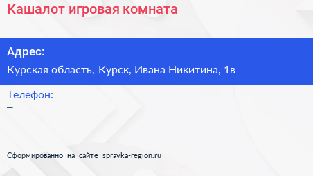 Кашалот, игровая комната по адресу Курская область, Курск, Ивана Никитина, 1в в дальнейшем Организация, размещена в следующих категориях: