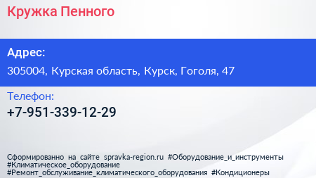 Кружка Пенного по адресу 305004, Курская область, Курск, Гоголя, 47 в дальнейшем Организация, размещена в следующих категориях: