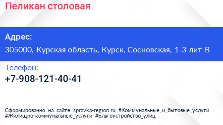 Пеликан, столовая по адресу 305000, Курская область, Курск, Сосновская, 1-3 лит В в дальнейшем Организация, размещена в следующих категориях: