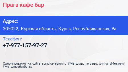 Прага, кафе-бар по адресу 305022, Курская область, Курск, Республиканская, 9а в дальнейшем Организация, размещена в следующих категориях: