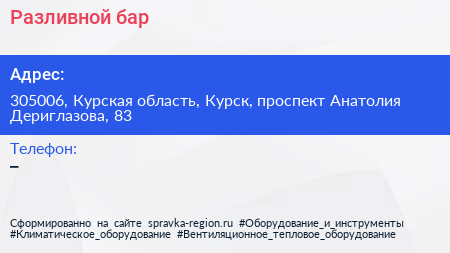 Разливной бар по адресу 305006, Курская область, Курск, проспект Анатолия Дериглазова, 83 в дальнейшем Организация, размещена в следующих категориях: