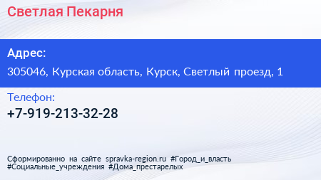 Светлая Пекарня по адресу 305046, Курская область, Курск, Светлый проезд, 1 в дальнейшем Организация, размещена в следующих категориях: