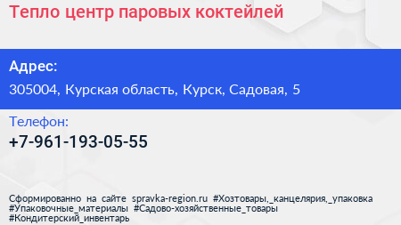 Тепло, центр паровых коктейлей по адресу 305004, Курская область, Курск, Садовая, 5 в дальнейшем Организация, размещена в следующих категориях:
