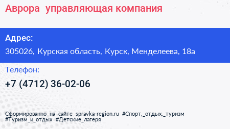Аврора+, управляющая компания по адресу 305026, Курская область, Курск, Менделеева, 18а в дальнейшем Организация, размещена в следующих категориях: