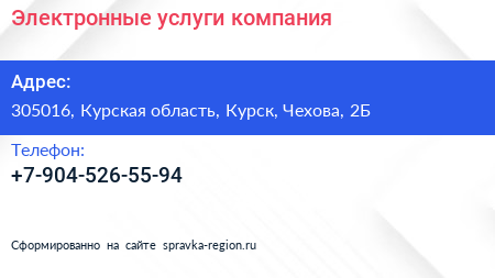 Электронные услуги, компания по адресу 305016, Курская область, Курск, Чехова, 2Б в дальнейшем Организация, размещена в следующих категориях: