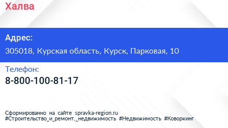 Халва по адресу 305018, Курская область, Курск, Парковая, 10 в дальнейшем Организация, размещена в следующих категориях: