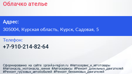 Облачко, ателье по адресу 305004, Курская область, Курск, Садовая, 5 в дальнейшем Организация, размещена в следующих категориях: