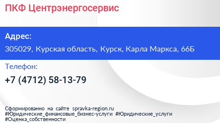 ПКФ Центрэнергосервис по адресу 305029, Курская область, Курск, Карла Маркса, 66Б в дальнейшем Организация, размещена в следующих категориях: