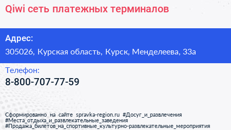 Qiwi, сеть платежных терминалов по адресу 305026, Курская область, Курск, Менделеева, 33а в дальнейшем Организация, размещена в следующих категориях: