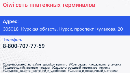 Qiwi, сеть платежных терминалов по адресу 305018, Курская область, Курск, проспект Кулакова, 20 в дальнейшем Организация, размещена в следующих категориях: