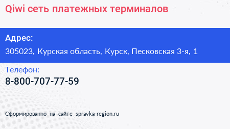 Qiwi, сеть платежных терминалов по адресу 305023, Курская область, Курск, Песковская 3-я, 1 в дальнейшем Организация, размещена в следующих категориях: