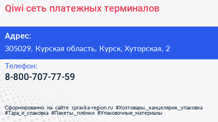 Qiwi, сеть платежных терминалов по адресу 305029, Курская область, Курск, Хуторская, 2 в дальнейшем Организация, размещена в следующих категориях: