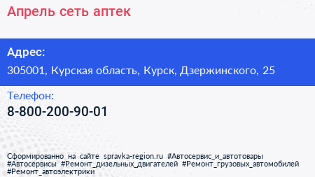 Апрель, сеть аптек по адресу 305001, Курская область, Курск, Дзержинского, 25 в дальнейшем Организация, размещена в следующих категориях: