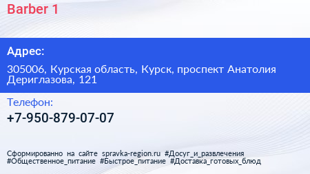 Barber №1 по адресу 305006, Курская область, Курск, проспект Анатолия Дериглазова, 121 в дальнейшем Организация, размещена в следующих категориях: