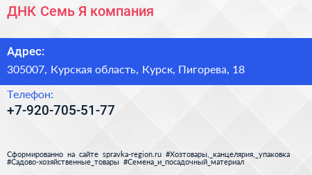 ДНК-Семь-Я, компания по адресу 305007, Курская область, Курск, Пигорева, 18 в дальнейшем Организация, размещена в следующих категориях: