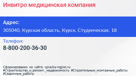 Инвитро, медицинская компания по адресу 305040, Курская область, Курск, Студенческая, 18 в дальнейшем Организация, размещена в следующих категориях: