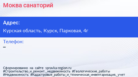 Моква, санаторий по адресу Курская область, Курск, Парковая, 4г в дальнейшем Организация, размещена в следующих категориях: