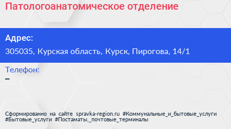 Патологоанатомическое отделение по адресу 305035, Курская область, Курск, Пирогова, 14/1 в дальнейшем Организация, размещена в следующих категориях: