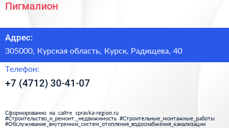 Пигмалион по адресу 305000, Курская область, Курск, Радищева, 40 в дальнейшем Организация, размещена в следующих категориях: