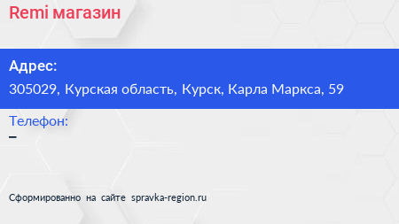 Remi, магазин по адресу 305029, Курская область, Курск, Карла Маркса, 59 в дальнейшем Организация, размещена в следующих категориях: