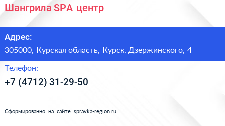Шангрила, SPA-центр по адресу 305000, Курская область, Курск, Дзержинского, 4 в дальнейшем Организация, размещена в следующих категориях:
