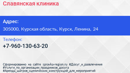 Славянская клиника по адресу 305000, Курская область, Курск, Ленина, 24 в дальнейшем Организация, размещена в следующих категориях: