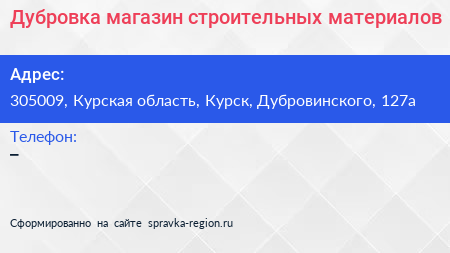 Дубровка, магазин строительных материалов по адресу 305009, Курская область, Курск, Дубровинского, 127а в дальнейшем Организация, размещена в следующих категориях: